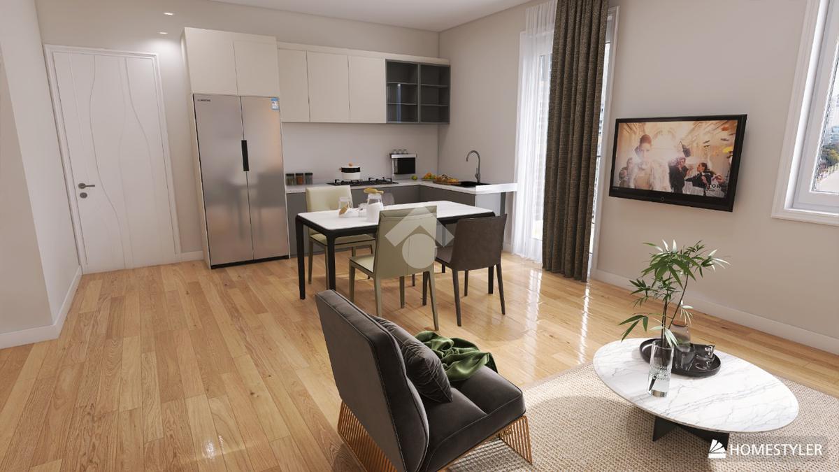 La zona giorno è luminosa con cucina a vista.